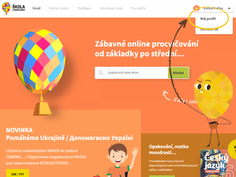 Zpět na Nástěnku se dostanete pomocí tlačítka přihlásit se v pravém horním rohu kliknutím na Můj profil.